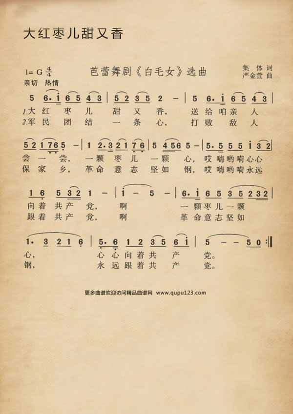 大红枣儿甜又香(芭蕾舞剧《白毛女》选曲)曲谱