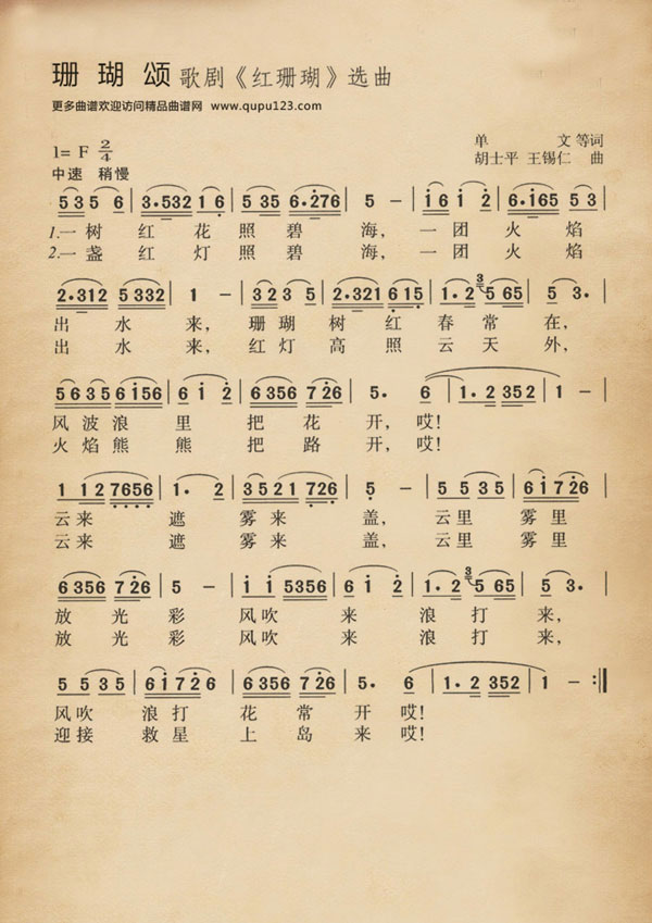 珊瑚颂(歌剧《红珊瑚》选曲)曲谱