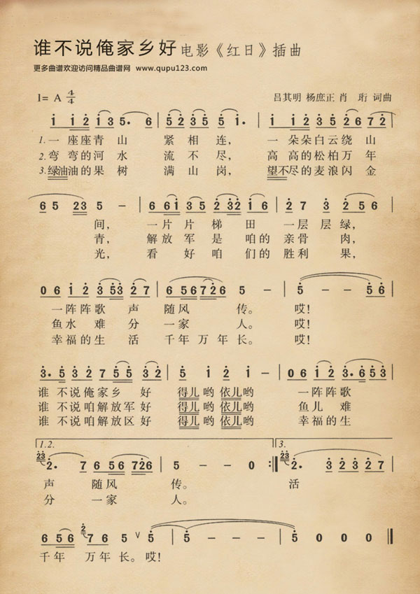 谁不说俺家乡好(电影《红日》插曲---版本三)曲谱