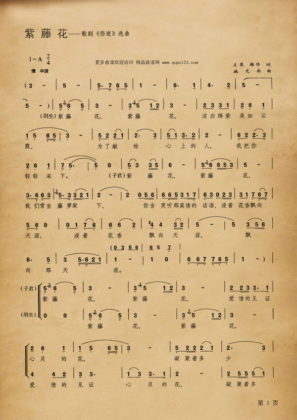 紫藤花(歌剧《伤逝》选曲)曲谱
