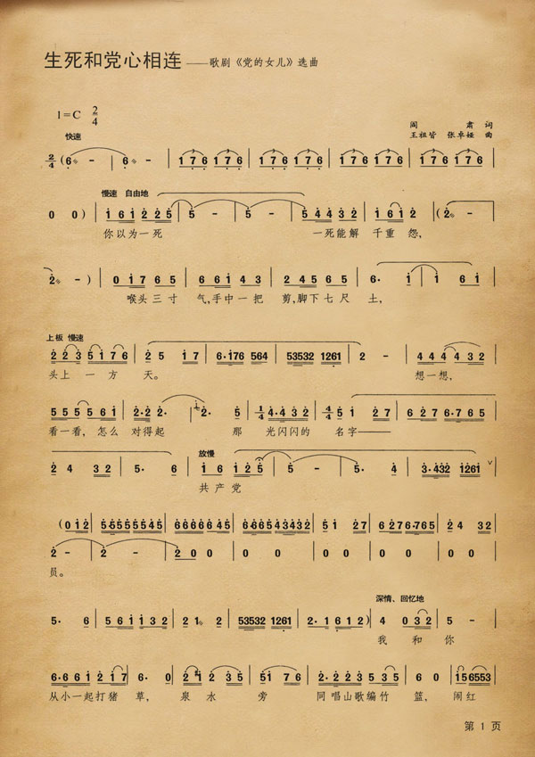 生死和党心相连(歌剧《党的女儿》选曲)曲谱