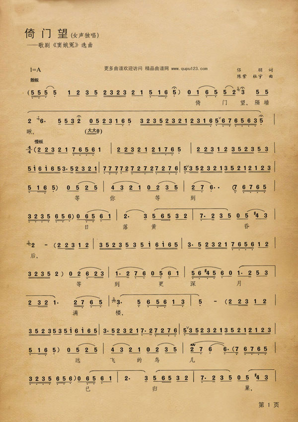 倚门望(歌剧《窦娥冤》选曲--女声独唱)曲谱