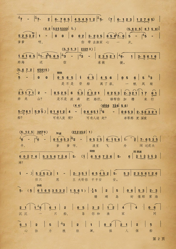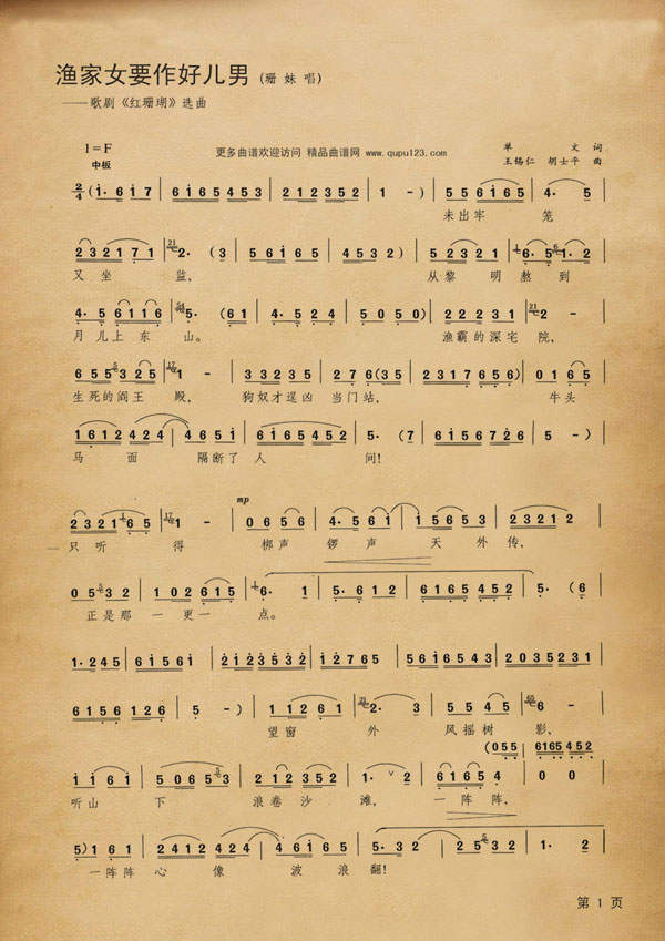 《红珊瑚》插曲《渔家女要作好儿男》图谱。