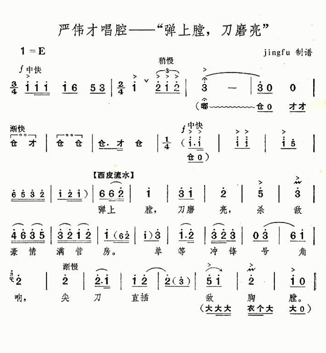 弹上膛,刀磨亮 简谱—《奇袭白虎团》京剧谱。