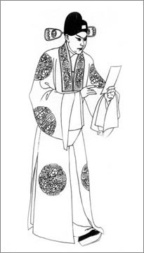 状元登科、官吏婚典及喜庆团圆场合时使用。大红色团花纹样,绒绣圈金。