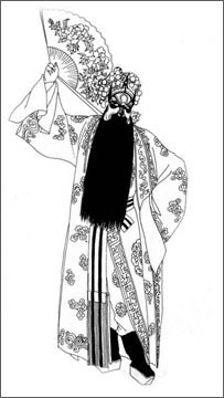 用于具有粗犷豪放性格的这一类型人物。一般绒绣大枝子角花,或平金绣散点式大流云。花褶敞穿。